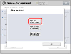 Appuyer sur [Régler détails] → [Corr. pb align. image].