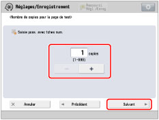 Saisir le nombre de pages de test à effectuer → appuyer sur [Suivant].