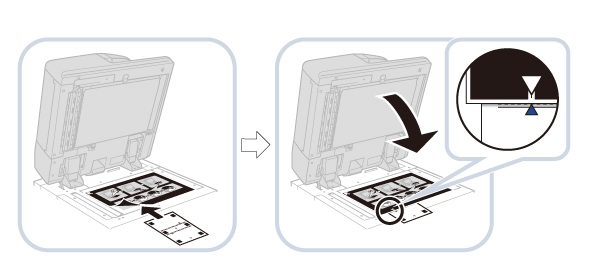 Ouvrir et fermer le chargeur doucement. Vérifier que la feuille de guidage reste alignée lors de la fermeture du chargeur. |