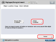 S'il est nécessaire de régler la position d'image de manière plus précise après l'avoir ajustée avec la feuille guide, sélectionner [Ne pas utilis. le scanner] et effectuer les réglages nécessaires pour les éléments de réglage d'ajustement individuels. |