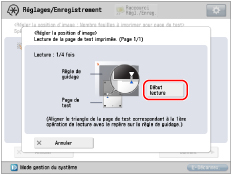 sur la page de test page pour la quatrième lecture avec la marque sur la feuille de guidage → appuyer sur [Début lecture].REMARQUE |