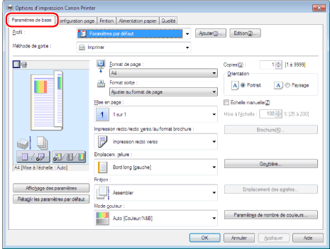 Cliquer sur [Paramètres de base].