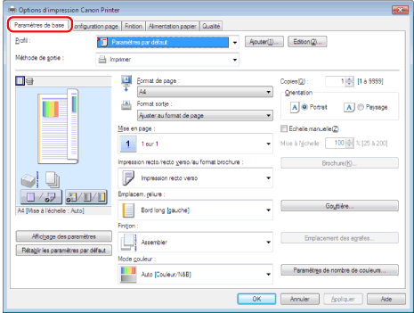 Cliquer sur [Paramètres de base].