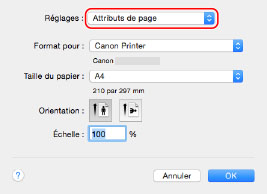 En fonction de l'application utilisée, il se peut que la boîte de dialogue [Format d'impression] n'apparaisse pas. L'écran peut varier en fonction du système d'exploitation et de l'application, ainsi que du type et de la version du pilote d'impression. |
