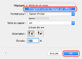 Sélectionner [Enregistrer comme réglages par défaut] dans [Réglages] → cliquer sur [OK].