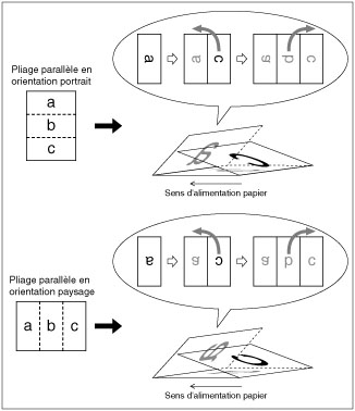 Le papier plié en Z peut être froissé selon le type de papier et l'environnement utilisés. Il est impossible d'utiliser ce réglage avec "Brochure" ou "Piqûre à cheval". |