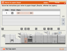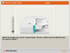Si des bourrages papier sont signalés à plusieurs emplacements, retirer le papier bloqué dans l'ordre indiqué sur l'afficheur tactile. |