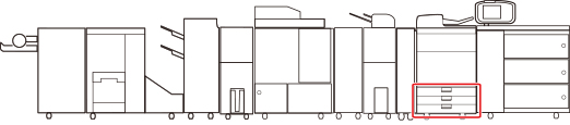 Cette section présente l'élimination d'un bourrage papier dans les cassettes de la machine. L'emplacement des cassettes de la machine est illustré ci-dessous.