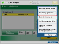 Le nombre de boutons personnels pouvant être enregistrés peut être inférieur au nombre maximum, selon l'utilisation de la mémoire de la fonction Menu rapide. Si l'authentification n'est pas définie, les boutons personnels ne s'affichent pas. |