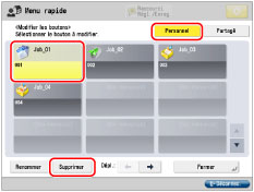 Pour des instructions sur la saisie du nom du bouton et du commentaire, voir "Mémorisation d'un bouton personnel/bouton commun". |