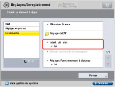 Appuyer sur [Réglages de gestion] → [Licence/Autre] → [Interface utilisateur distante].