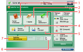 7 | [Spécifier destinataires] Pour afficher les méthodes de sélection des destinataires ou la liste de destinataires. |