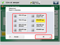 Si le format de fichier [OOXML] est sélectionné, on ne peut envoyer qu'à une résolution de [300x300 ppp] ou [600x600 ppp]. |