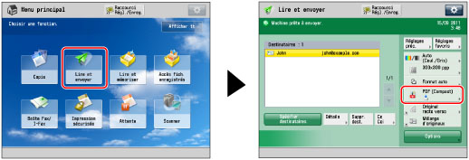 → [Lire et envoyer] → spécifier le destinataire → appuyer sur la touche de sélection du format de fichier.