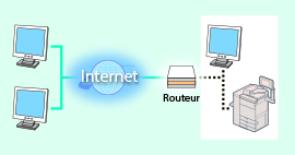 Par contre, si une adresse IP privée est attribuée, l'imprimante/machine multifonctions n'est pas visible sur un réseau externe et seuls les utilisateurs d'un réseau local pourront y accéder (réseau local d'entreprise par exemple).