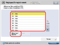 Il est possible d'enregistrer n'importe quel nom comme nom d'expéditeur, que ce soit le nom d'un service, d'un bureau ou d'une personne et de modifier/supprimer les noms mémorisés.