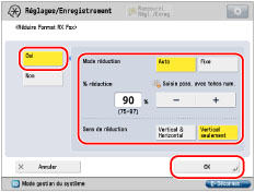 Appuyer sur [Oui] → spécifier chaque réglage → appuyer sur [OK].
