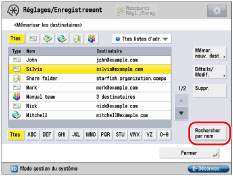 Sélectionner le destinataire à supprimer → appuyer sur [Suppr.].