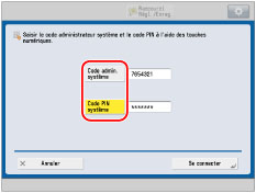 Ne pas oublier le code PIN d'administrateur système. En cas d'oubli, contacter le revendeur Canon agréé local. |