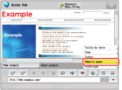 Appeler la page Web à enregistrer → appuyer sur [Menu].