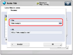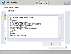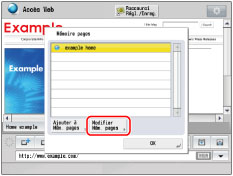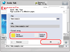 Le nom et l'URL s'affichent automatiquement. Le nom et l'URL peuvent être modifiés. Si l'URL est modifiée, le contenu de l'écran enregistré ne change pas. L'écran affiché actuellement est enregistré sous forme de mémoire pages. |