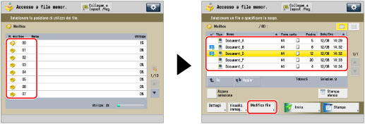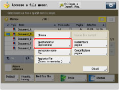 Il nome del file spostato o duplicato è lo stesso del file originale. Se la macchina entra in modo Riposo durante lo spostamento o la duplicazione, vengono spostati o duplicati solo i file che sono stati elaborati fino al momento in cui la macchina è entrata nel modo Riposo. |