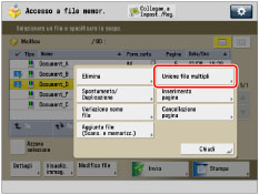 Selezionare la mailbox desiderata → selezionare i file nell'ordine in cui si intende unirli → premerli [Modifica file].