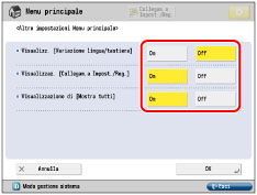 nella parte superiore destra, viene visualizzata la seguente schermata. Selezionare le impostazioni nella schermata visualizzata e impostare la schermata Menu principale da visualizzare.
