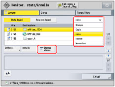Se ACCESS MANAGEMENT SYSTEM KIT è abilitato quando un utente generico collegato stampa un elenco dei lavori di invio, i lavori eseguiti dagli altri utenti vengono stampati con "***" nella colonna Indirizzo destinazione. Per visualizzare le informazioni nella colonna Indirizzo destinazione, eseguire l'accesso come amministratore. |