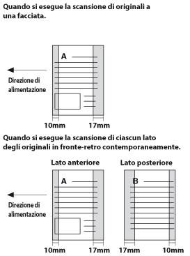 Se si esegue la scansione di originali con formati misti senza impostare il modo Originali formati misti o selezionando un formato carta non standard come formato della carta, la macchina potrebbe non essere in grado di rilevare se gli originali sono a colori o in bianco e nero. |