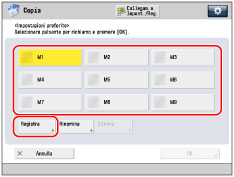 Per rinominare un pulsante, selezionarlo → premere [Rinomina] → immettere il nome.