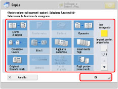 Premere [Impost.prefer. predefinite] → selezionare le Impostazioni preferite assegnate → premere [OK].