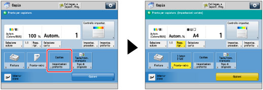 In [Opzioni] è possibile creare selezioni veloci per le funzioni utilizzate di frequente. È inoltre possibile registrare selezioni veloci nelle [Impostaz. preferite]. Per informazioni sulle impostazioni preferite, vedere