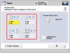 Per informazioni sui prodotti opzionali necessari per l'utilizzo della funzione [2 lati 1 lato], vedere "Prodotti opzionali necessari per ciascuna funzione". |