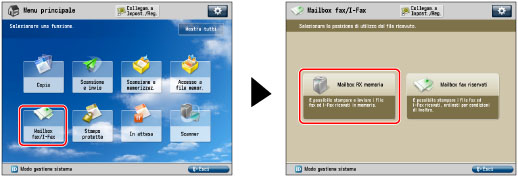→ [Mailbox fax/I-Fax] → [Mailbox RX memoria].