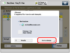 Per eliminare automaticamente il file selezionato dopo la stampa, premere [Eliminaz. file dopo stampa]. |