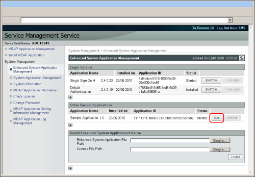 Selezionare l'applicazione da arrestare → fare clic su [Stop].