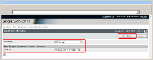 [SDL Format] | Esportare i dati utente nel formato di file utilizzato per SDL e Local Device Authentication di SSO-H (estensione del file: "ldif"). |
