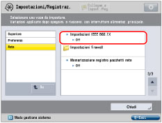 Premere [Preferenze] → [Rete] → [Impostazioni IEEE 802.1X].