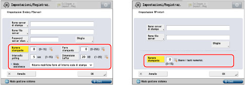 In [Nome file server], immettere il nome del file server a cui appartiene il server di stampa desiderato → in [Nome server di stampa], immettere il nome del server di stampa desiderato.