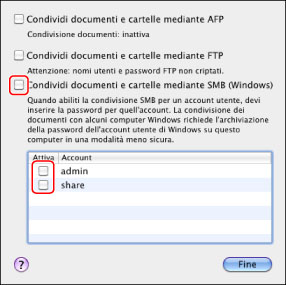 Avviare il servizio SMB su Mac OS X.