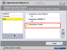 Premere [Preferenze] → [Rete] → [Impostazioni firewall].