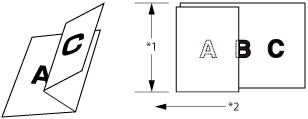 *1 Se l'Orientamento automatico è impostato su 'Off', parte dell'immagine potrebbe essere tagliata. *2 Se l'Orientamento automatico è impostato su 'On', viene selezionato automaticamente il formato A4R. Tuttavia, se è impostato Unione blocchi lavori, il formato A4R non viene selezionato automaticamente. Se sono caricate assieme carta di formato A3 e A4, solo la carta A3 viene piegata a Z. Anche se si imposta l'originale in orientamento A4 e si imposta l'Orientamento automatico su 'On', la carta A4R non viene selezionata se si imposta [Originali formati misti]. |