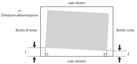 Se l'immagine stampata è inclinata, potrebbe essere possibile correggere l'immagine disallineata giustificando i margini di 'i', che è la distanza dal bordo sinistro della carta all'area di stampa, e 'j'.
