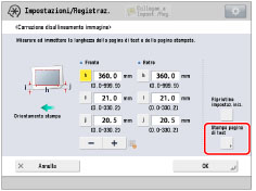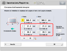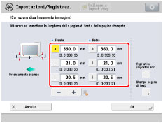 [i]: | Immettere la lunghezza misurata dal bordo di testa sinistro dell'area di stampa al bordo sinistro della carta. |