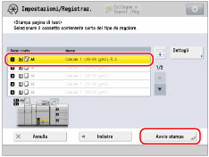 Selezionare una fonte di alimentazione carta che contenga un formato carta personalizzato → premere [Avvio stampa].
