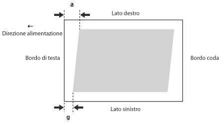 Questa impostazione permette di correggere la forma dell'immagine bilanciando la lunghezza da 'a' e 'g' al bordo di testa della carta quando l'immagine è stampata come un parallelogramma.