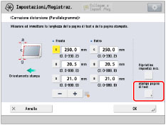Per ripristinare il valore accumulato, premere [Ripristino impostaz.iniz.]. Se i segni di registro sono stampati sulla carta consegnata, l'area stampata è pari all'area compresa fra i segni di registro. |