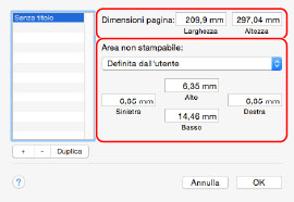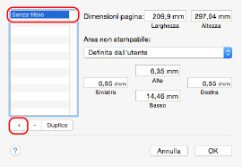 Se il formato carta desiderato non viene visualizzato in [Dimensioni pagina], è possibile registrare un nuovo formato di carta.