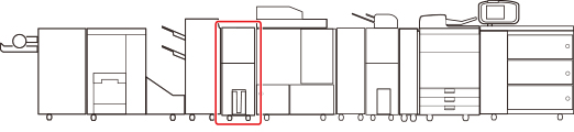 Nella seguente illustrazione è indicata la posizione della carta inceppata. Fare riferimento a questa illustrazione per rimuovere la carta inceppata. ![]() *Pannello anteriore La Paper Folding Unit-J1 è un prodotto opzionale. |